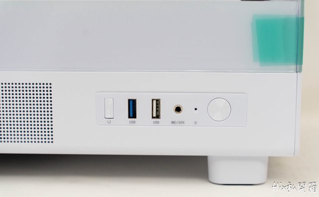 除了開關外還有電源指示燈、複合音源口、USB2.0、USB3.0以及RESET鍵