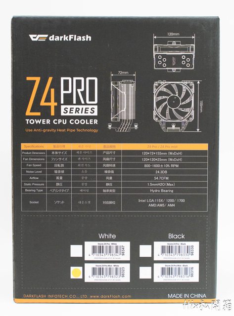 Z4 PRO為單塔風冷塔散,小巧體積下號稱可以壓制200W的熱度