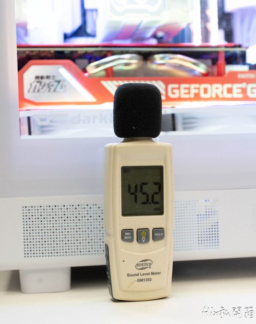 最後將塔散以及內置風扇轉速開到最大,也才45分貝而已