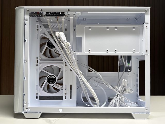 風扇線及機殼IO皆採用白色線材整體性更佳。風扇線材皆提供分接頭,但需花費一些時間