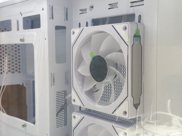 出廠已預付3顆120mm無限鏡面ARGB PWM風扇,其中2顆為反向扇葉並裝在側邊風扇架上,