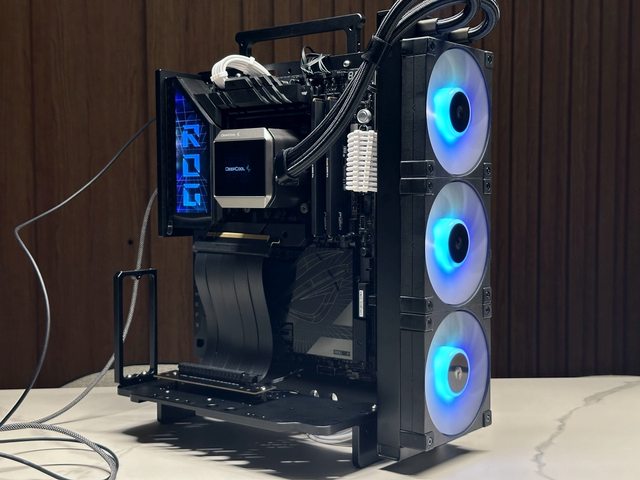 接著進行裝機,使用新入手的直立型裸測平台。當然測試用途才將冷排以直立且水管在上