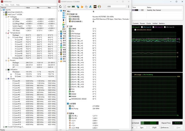 CPU:i7-14700K QS (固定PL1=PL2=250w)