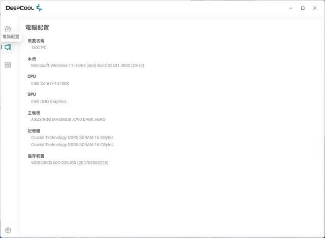 電腦配置能顯示目前安裝的核心零組件廠牌及名稱。