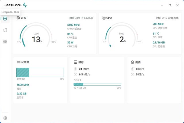 軟體介面也走清新簡約風,此軟體目前提供3項主要功能,其中DeepCool Hub 能顯示/監
