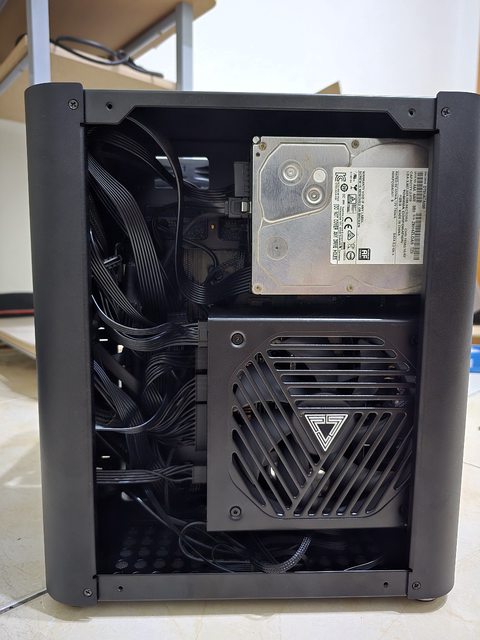 好再塞進去,左邊又一堆線會很難受,另外選擇背插的話硬碟只能裝一顆,不然線應該出