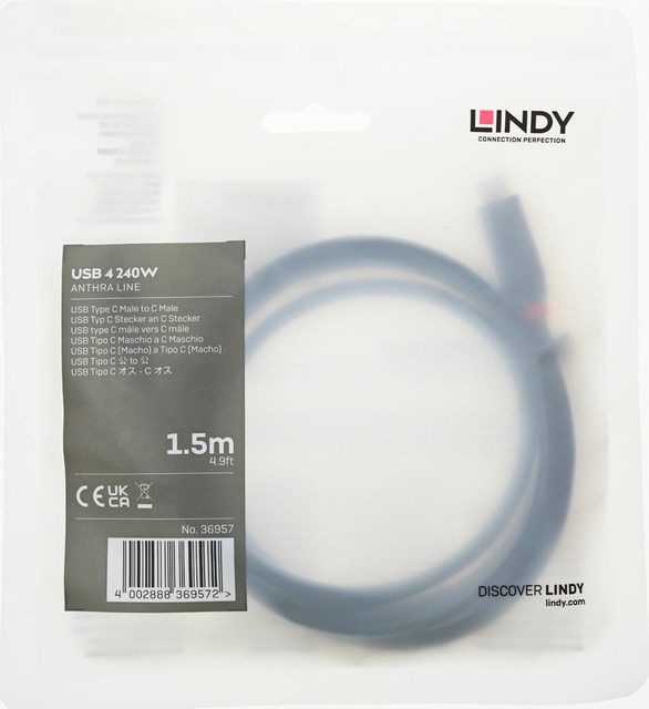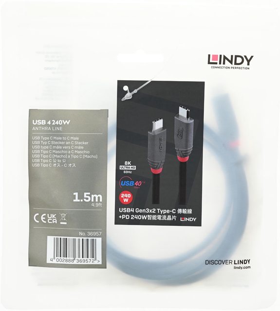 LINDY ANTHRA LINE USB4 Gen3×2 240W Type-C to Type-C充電傳輸線符合USB-IF協會規