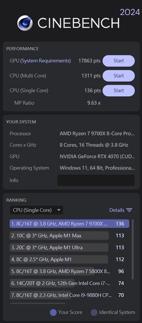 對照2020年的 3700X下 9700X 單核成長71%多核67%