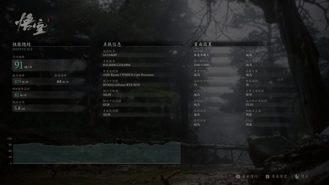 AORUS 4070 SUPER 搭 9700X 運行黑悟空神話1440P平均幀91
