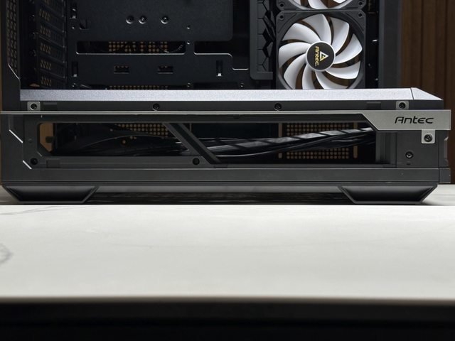 Antec C7 ARGB特色之一是在單艙架構下,側邊進氣能安裝3顆120mm風扇。不少單艙架構