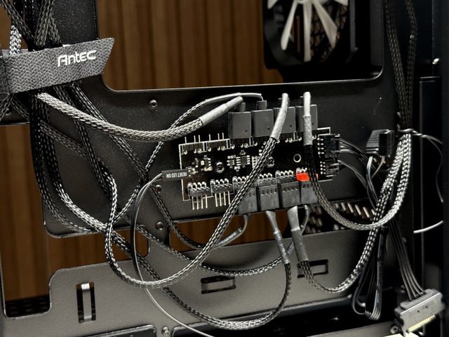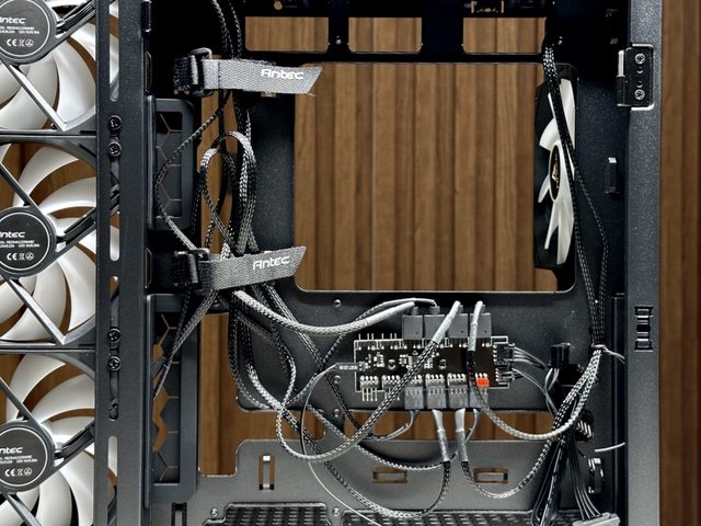 Antec C7 ARGB設置了32mm深的理線空間,應該是相當充裕,內附的5埠風扇及ARGB燈效