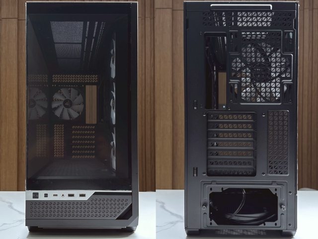 後方有大面積三角開孔,搭配140mm正向扇葉風扇排風,散熱能力應該可以期待。