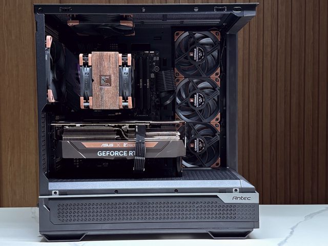 設計及用料對得起售價,也是市面上少數單艙架構但配置側邊3顆120mm風扇的全景機殼,