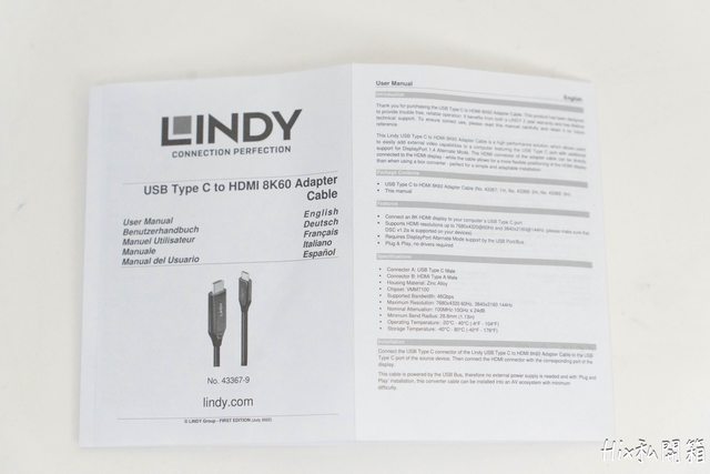 首先是 主動式Type-C to HDMI 2.1 8K HDR轉接線(代號43368)