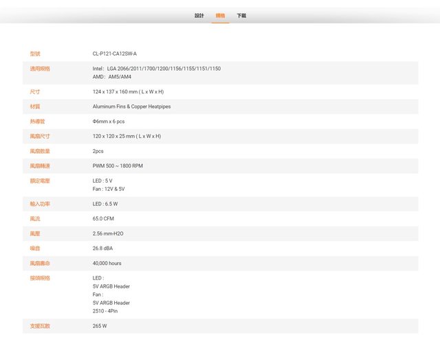 搭配官網規格表,ASTRIA 600 ARGB支援多種主流CPU腳位,高度160mm,最高解熱265W。