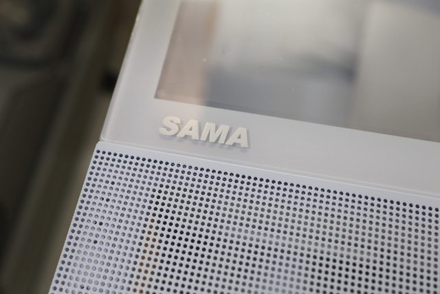 不顯眼的SAMA LOGO位於玻璃側板左下