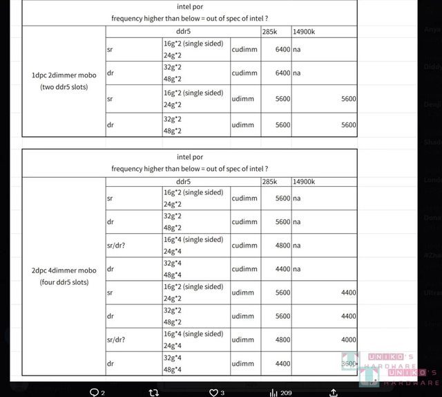 由於 JEDEC 好像沒有 6400 的 UDIMM,所以 INTEL 關於 UDIMM 的支援也是止步於 5600。
