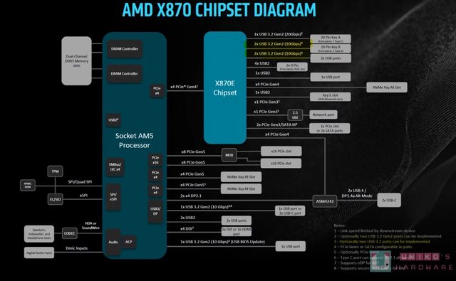 多),卻又在 X870 CHIPSET DIAGRAM 提到晶片組那 4 個 USB 10 Gbps,也可以改為提供 4