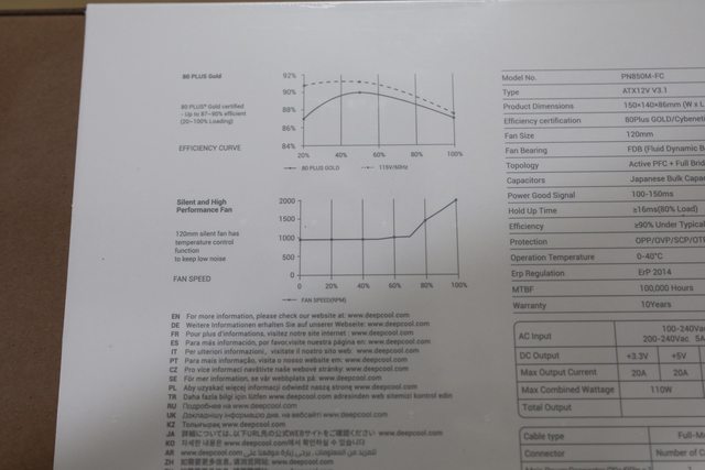 彩盒背面也同時標示了轉換效率曲線、噪音曲線等資訊參考