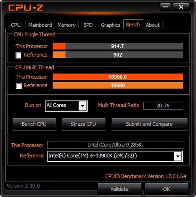 CPU-Z Benchmark 對比 13900K