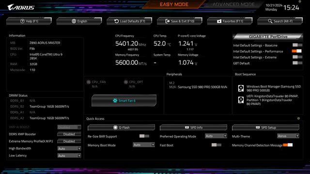 Z890平台上也調整改 PerfDrive 比之前又多優化過的GBT預設模式