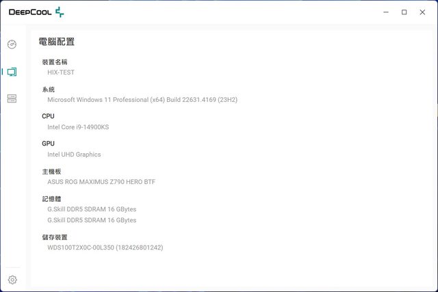 第三分頁為九洲風神自家產品的細部控制,目前只安裝了水冷所以只有顯示水冷選項