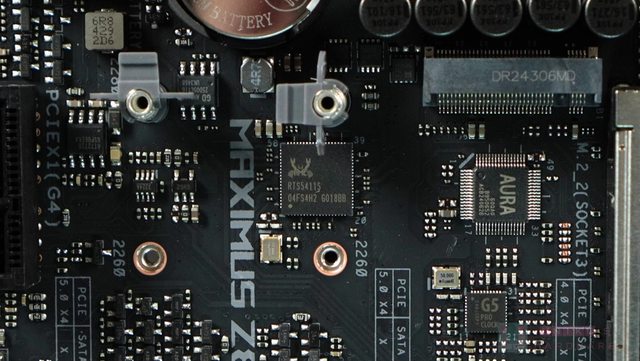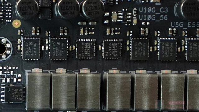 ‧ 在 PCIEX16 (G5) 下方有 2 顆 GENESYS GL9930T PCI-E 3.0 X1 中繼器。在主機板的左