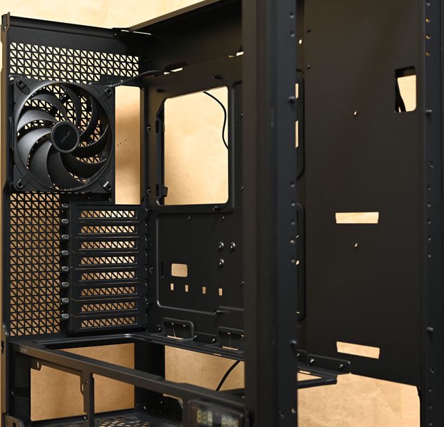 可裝140mm,8個標準擴充槽之間沒有支架,不用擔心會阻擋介面卡連接埠。擴充槽側邊有