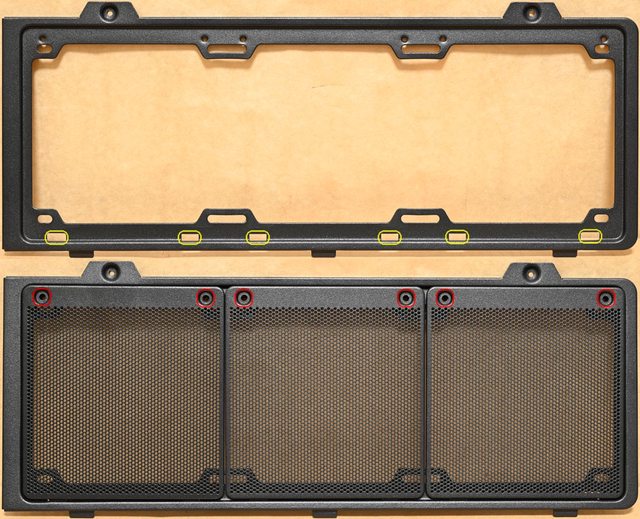 力凹槽,大面積三角形孔洞網狀通風口的長條形固定孔可裝1個120mm/140mm風扇,水冷排