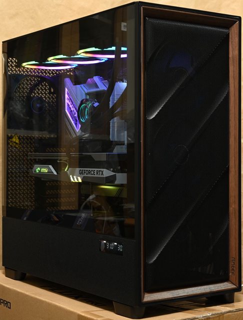 ▼前方網孔板邊緣外框使用胡桃木製作,右下有ANTEC商標