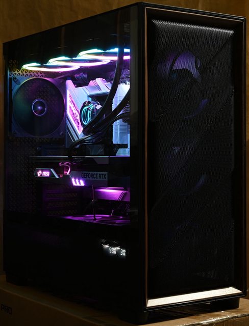 ○專利F-LUX(Flow Luxury)散熱架構,添加電源艙及右側板通風口強化進氣,前方網孔板
