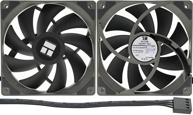 ▼TL-C12C風扇,使用S-FDB軸承,9葉片扇葉中心有商標貼紙,外框中心標籤上有商標、
