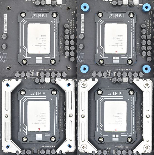 LGA1851/1700藍色套管套上固定鎖點(2),放上托架(3),用4個Intel托架固定螺絲鎖緊