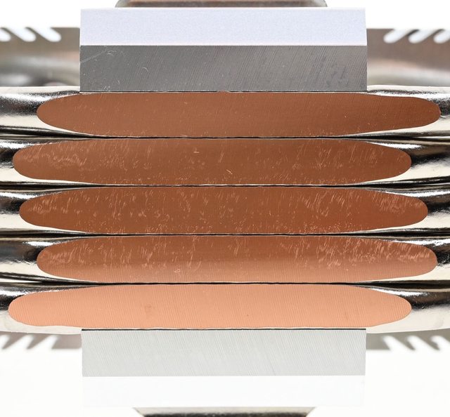 ▼處理器接觸面採熱導管直觸設計,5支熱導管削平露出銅原色