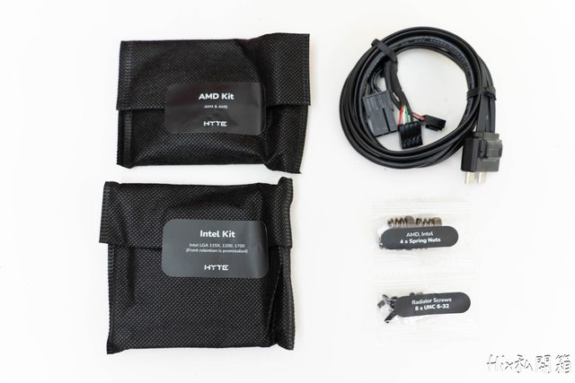 分別是冷排上的HYTE廠徽以及冷頭螢幕背面