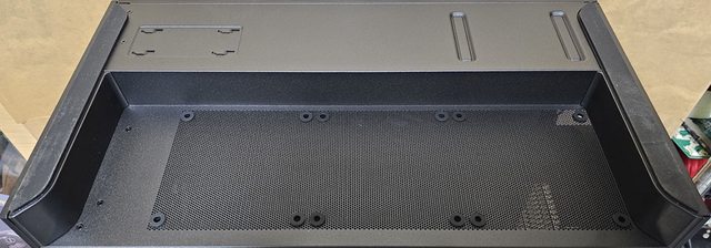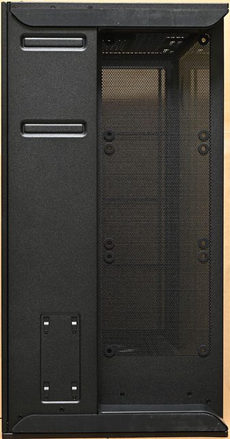 力位置,大面積圓形孔洞網狀通風口的長條形固定孔可裝1個120mm/140mm風扇,水冷排可