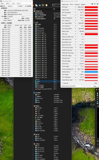 ▼CPU+GPU高負載30分鐘後Core Temp、GPU-Z感測器、AIDA64感測器頁面