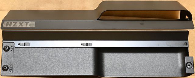▼整線擋板正面有商標,背面固定鎖點有ATX/E-ATX標示
