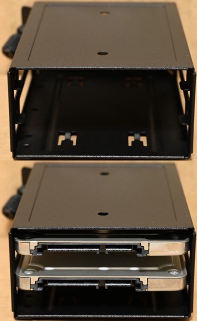 ▼3.5吋/2.5吋活動固定板可安裝2個3.5吋裝置(上)或2個2.5吋裝置(下)