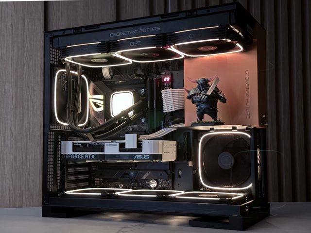 裝機搭配幾何未來自家Model 5 悟空機殼,龍鱗風扇燈效僅框體周圍一圈,個人覺得屬於