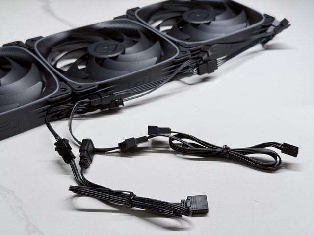 3顆風扇串接後再搭配專用的轉接線,轉成4Pin PWM及5V ARGB連結主機板。