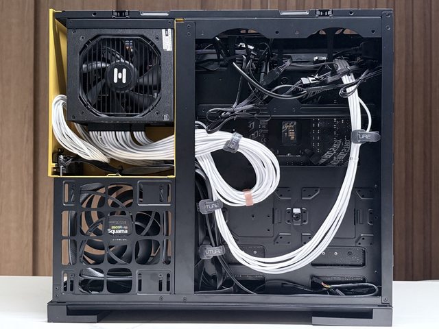 主要原因是上方420冷排幾乎與電源艙貼在一起,側邊幾乎只剩些微的電線空間,故搭配