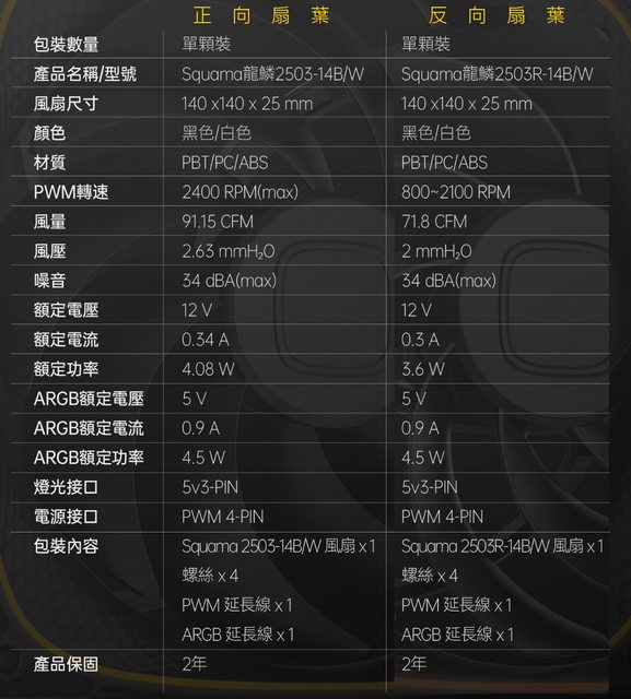 正向扇葉包裝標示為2503-12B或14B,反向扇葉包裝則標示為2503R-12B或14B。