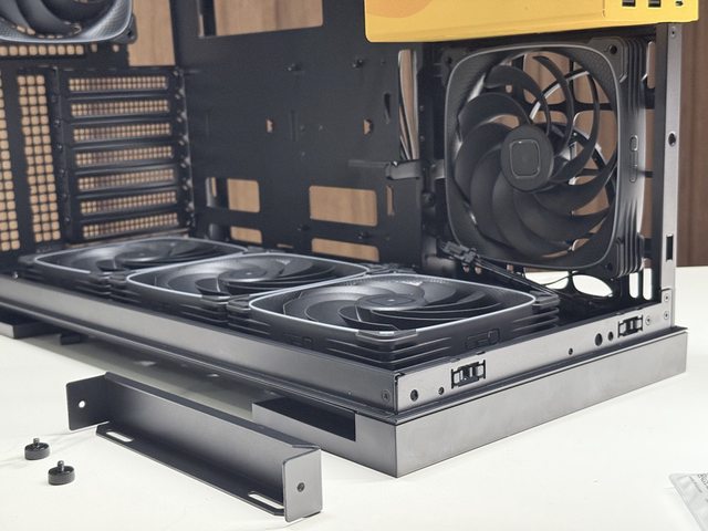 底部最多能安裝3顆140mm風扇,如果搭配顯示卡直立架則是2顆140mm,冷排方面底部只