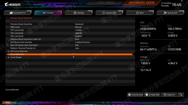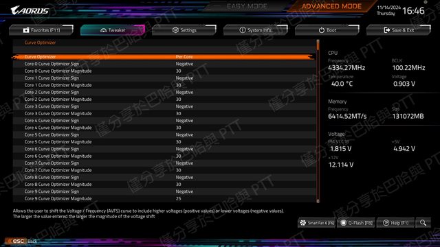 切換至PBO分頁,更改CO值再進行測試,不用重開機進BIOS設定,待確認好每個核心CO值