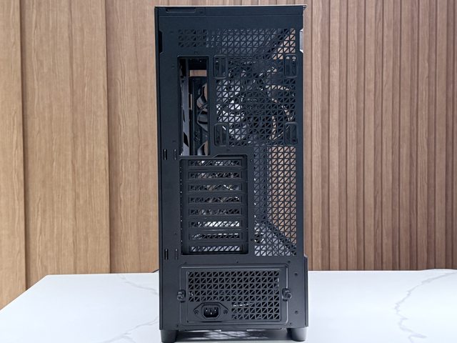 後方則具備大面積三角開孔及1顆140mm Tranquil 140風扇排氣。