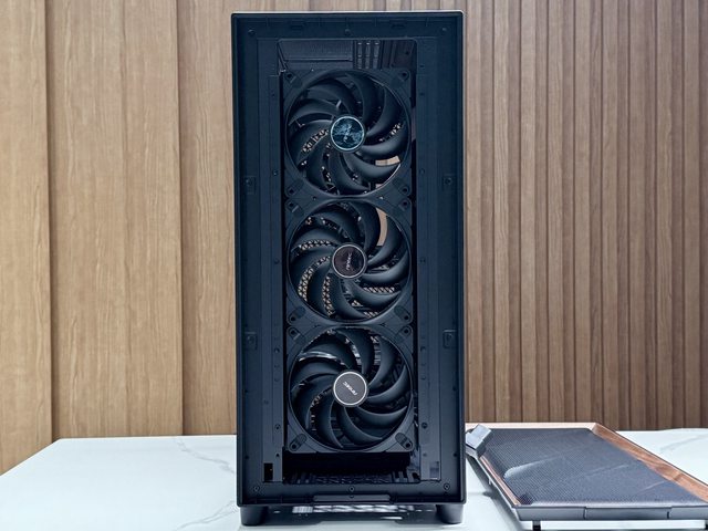 前面板支援3顆140mm風扇,符合目前大機殼逐漸能支援140mm風扇x3顆及420mm水冷的設計