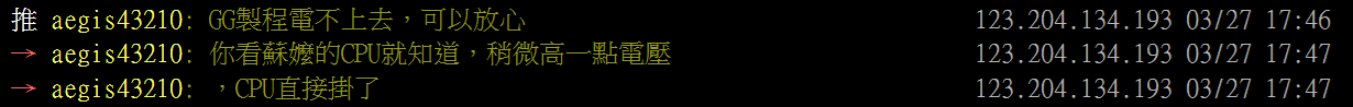推 AISC: CPU直接電死 然後rma拖一個月 你再買一顆IC 39.15.10.235 04/11 18:11