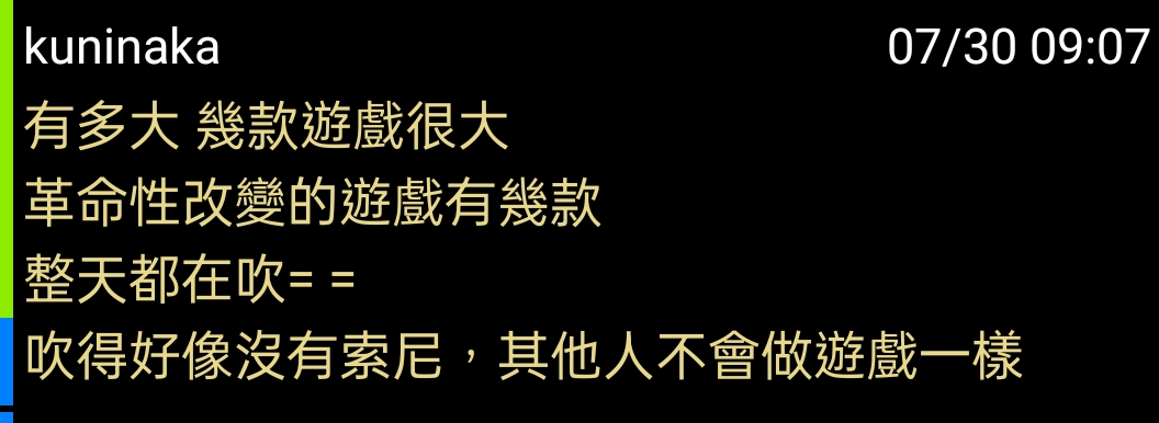 → kuninaka: 吹得好像沒有索尼,其他人不會做遊戲一樣 07/30 09:21