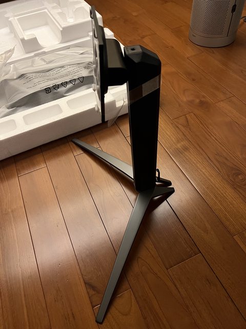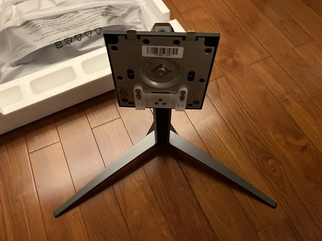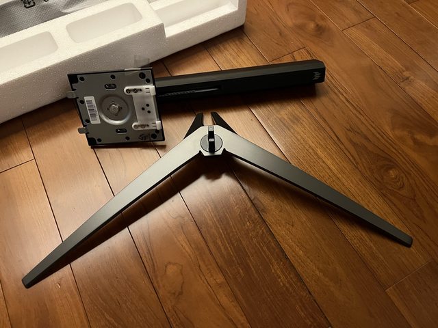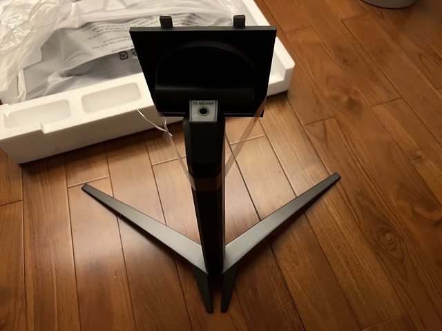 開始組裝螢幕,首先將支架插入底座上方